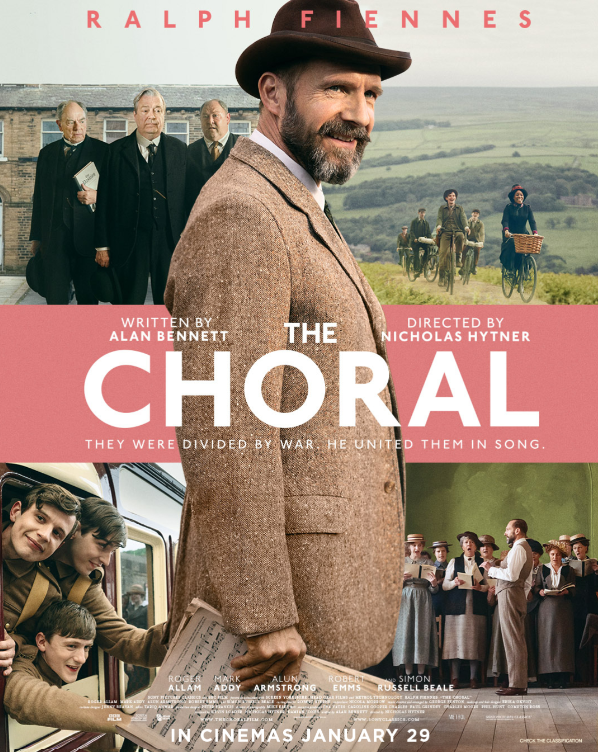 THE CHORAL is a 2025 British historical comedy drama film co-produced and directed by Nicholas Hytner and written by Alan Bennett. Set in 1916, during World War I, in the fictional town of Ramsden, Yorkshire, the film follows the members of the local choral society which recruits a group of teenage boys and girls for a performance of Edward Elgar's The Dream of Gerontius.